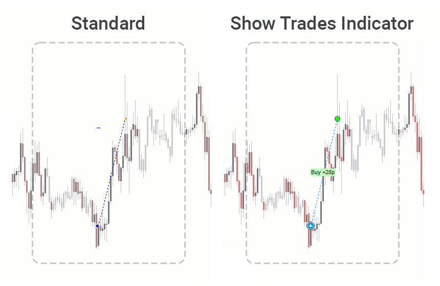 Визуальные отличия сделок. Индикатор Show Trades может отображать: