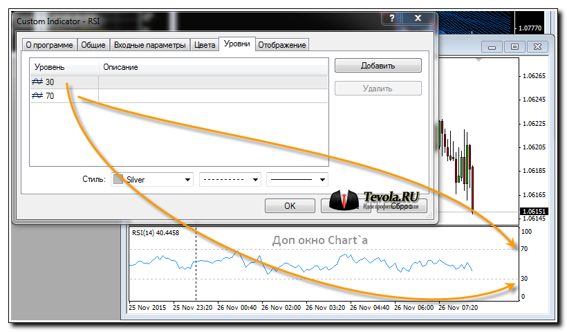 Для дополнительного окна Chart`а, мы можешь добавить различное количество используемых уровней, если это требуется.