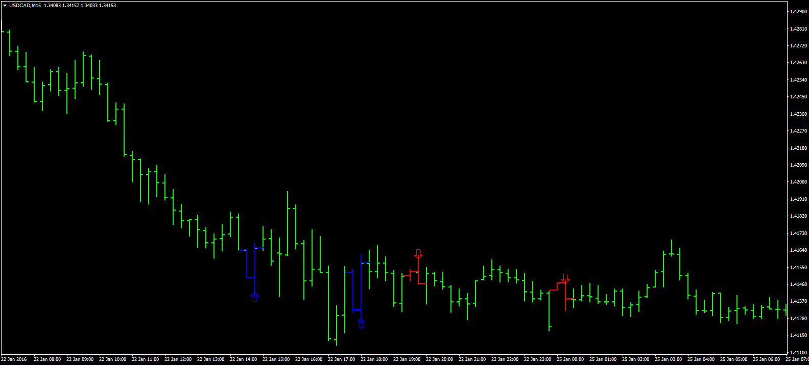 Эта группа отличается не моделью работы, а типом визуализации. Такое название инструменты получили, поскольку сигналы отмечаются стрелками, показывая направление потенциальной сделки. Часто разработчики это делают не для наглядности. Так они скрывают используемые инструменты и формулы их расчета. Большинство алгоритмов без перерисовки изначально реализуются платно, а уже потом попадают в открытый доступ.
