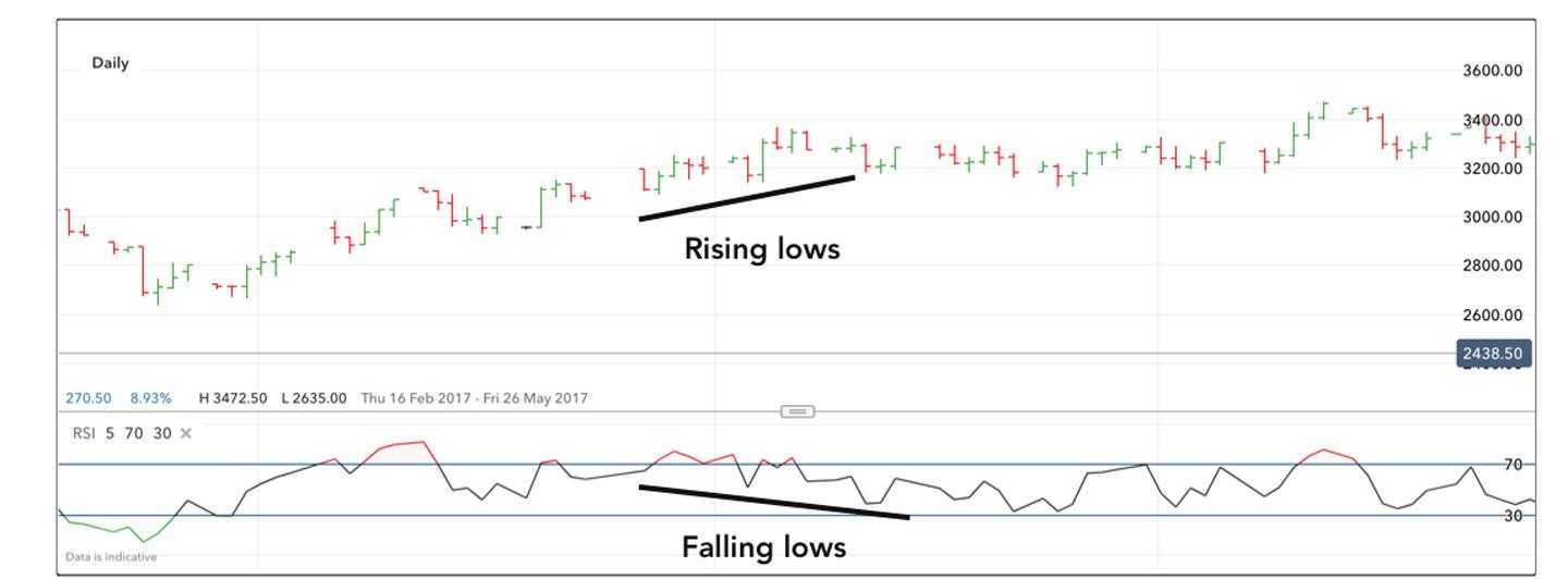 RSI в основном используется, чтобы помочь трейдерам на Форексе идентифицировать импульс, рыночные условия и опасные колебания цены. RSI выражается в виде чисел от 0 до 100. Если цена выходит за уровень 70 — актив считается перекупленным, в то время как цена на уровне 30 и ниже говорит о перепроданности. Как это трактовать, смотрите выше.