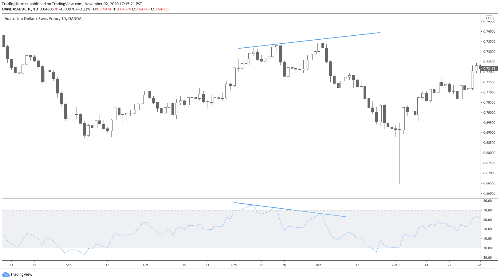 Дивергенция между цена данной валюты и RSI может означать две вещи: