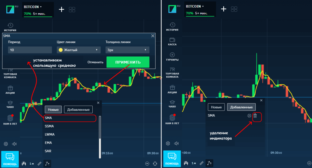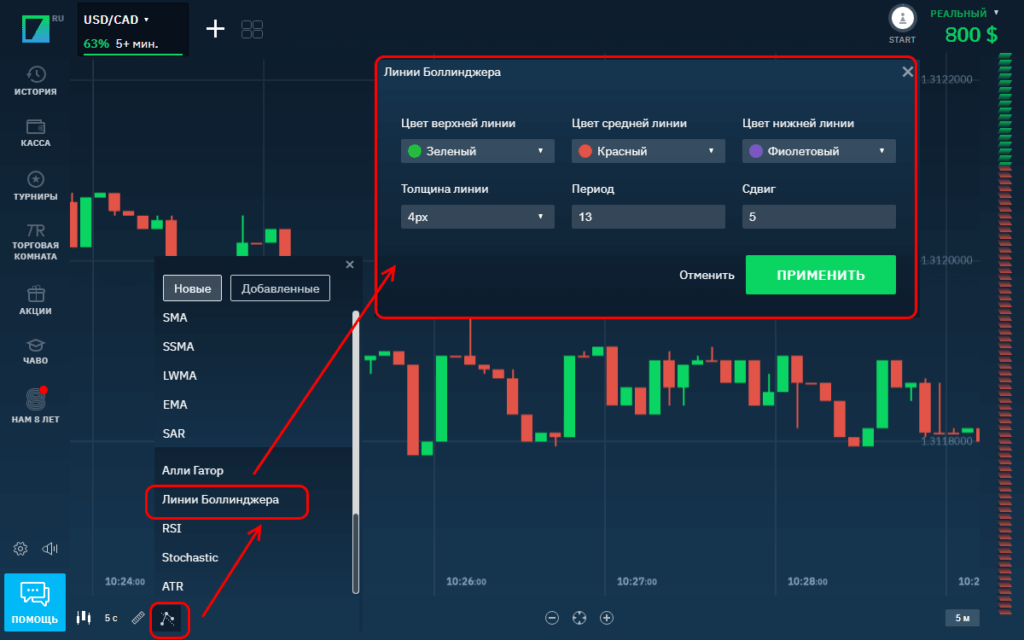 - Таймфрейм графика – 60 сек., 5 и 15 минут.