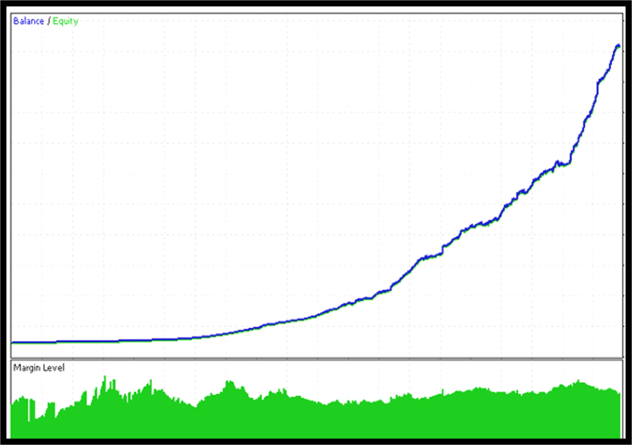 На myfxbook есть мониторинг работы советника. Правда, он выполняется на демо- счете, да еще и торговые привилегии не подтверждены. Но в целом кривая роста депозита соответствует тому, что можно ожидать от мартингейлового робота. По расхождению линий эквити и баланса видно, что робот просто пересиживает неудачные моменты.