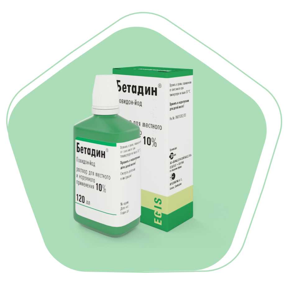 Повидон-йод (Бетадин) — йодофор, состоящий из комбинации йода и носителя – повидона. При контакте с кожей или слизистыми йод постепенно высвобождается из комплекса с повидоном и способствует разрушению вредоносных микроорганизмов.