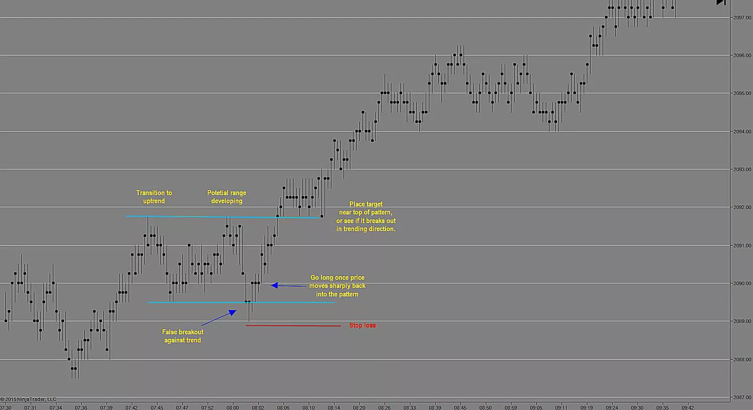 False breakouts are excellent trading opportunities. One strategy is to actually wait for a false breakout, and enter the market only after it occurs. For example, if the trend is up, and the price is pulling back to support, let the price break below support and then buy when it starts to rally back above support.