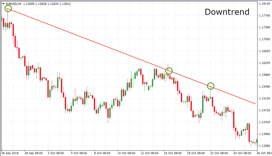 Each time the price approaches towards a trendline, there is a high chance that the price will bounce off the trendline. Just like with horizontal support and resistance levels, the trendline should have at least three price-touches before it is considered important.