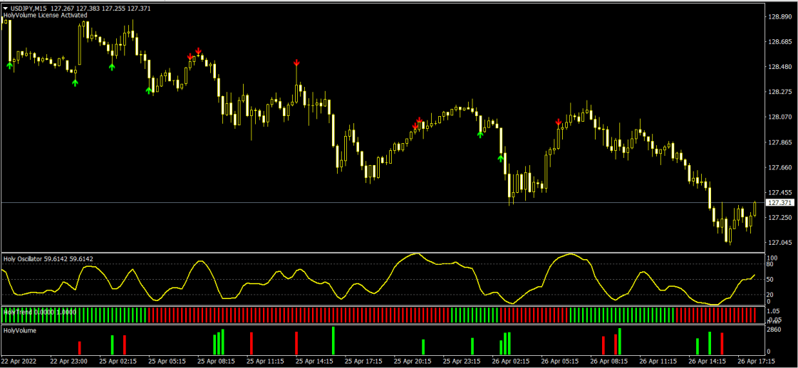 Когда линия гистограммы индикатора Forex Holy Grail пересекает целевой уровень, указывает на то, что рынок следует за трендом. Рыночные эмоции проявляются в типично мощном импульсном сценарии реакции на тренд..