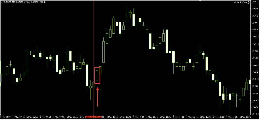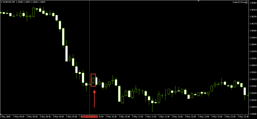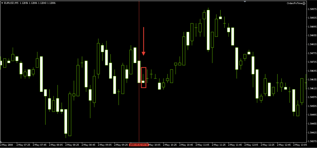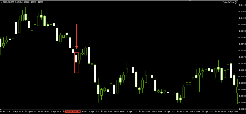Если сформированная в 09-55 свеча на графике М5 по EUR/USD восходящая, то свеча на 10-00 тоже будет восходящей с вероятностью 95%. Дело в том, что именно свеча на 09-55 отображает настроения британских трейдеров