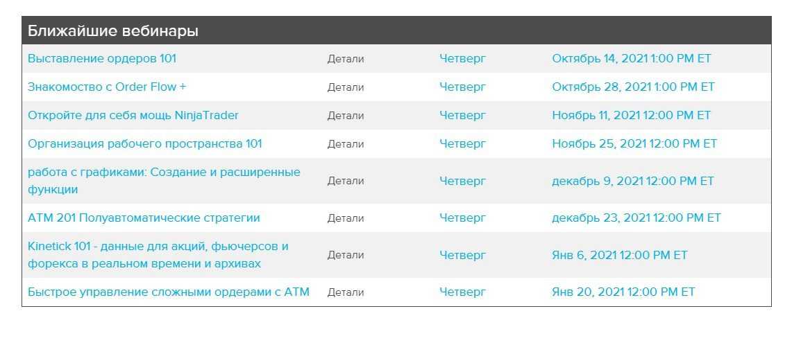 В платформе NinjaTrader и в экосистеме сообщества имеется широкий выбор образовательных видеороликов, вебинаров и документации.