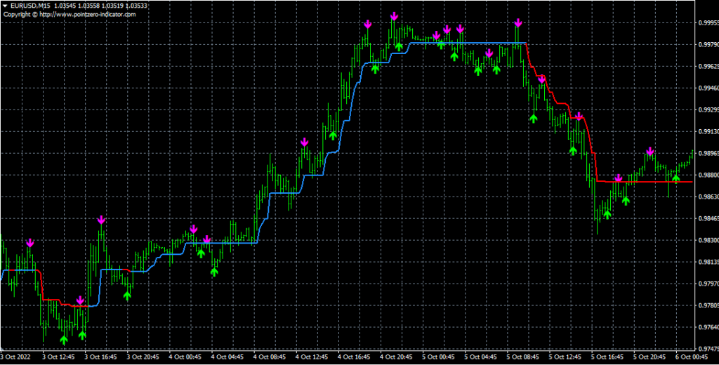 Действительно, если Вы установите этот индикатор на график с ценой, то увидите, что цена часто отрабатывает его в качестве уровня поддержки и сопротивления. Я могу сказать, что этот подход работает, но мне кажется, что лучше будет делать упор на классические горизонтальные уровни поддержки и сопротивления.