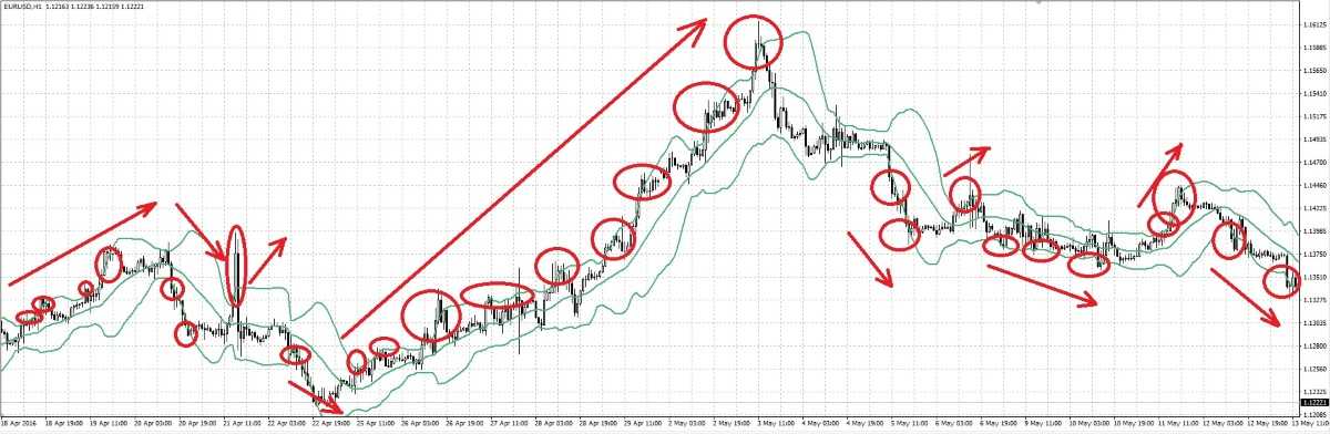 Опытные трейдеры не советуют торговать исключительно по Bollinger Bands, так как его основная задача заключается не в поиске подходящих точек для входа/выхода с рынка, а демонстрации текущего состояния рынка, фиксации возможных разворотов, подтверждении продолжения тренда.