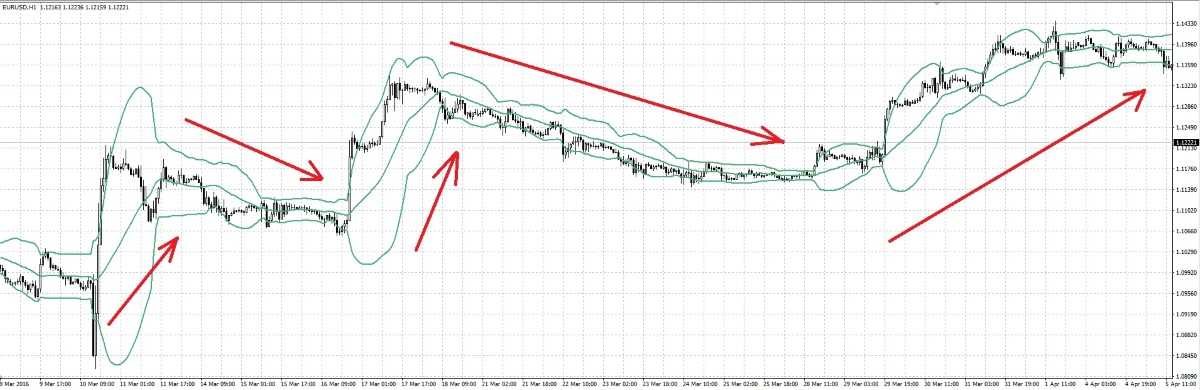 - Помимо собственного движения, они могут подстраиваться под тенденцию рынка, поэтому постоянно то сужаются, то расширяются.