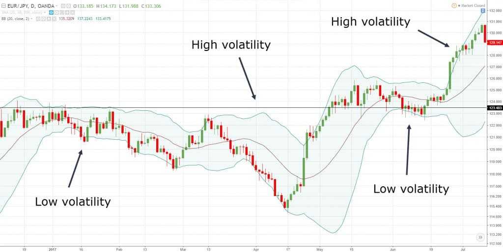 So, this is where a Bollinger Bands strategy can help because it contracts when volatility is low and expands when volatility is high.