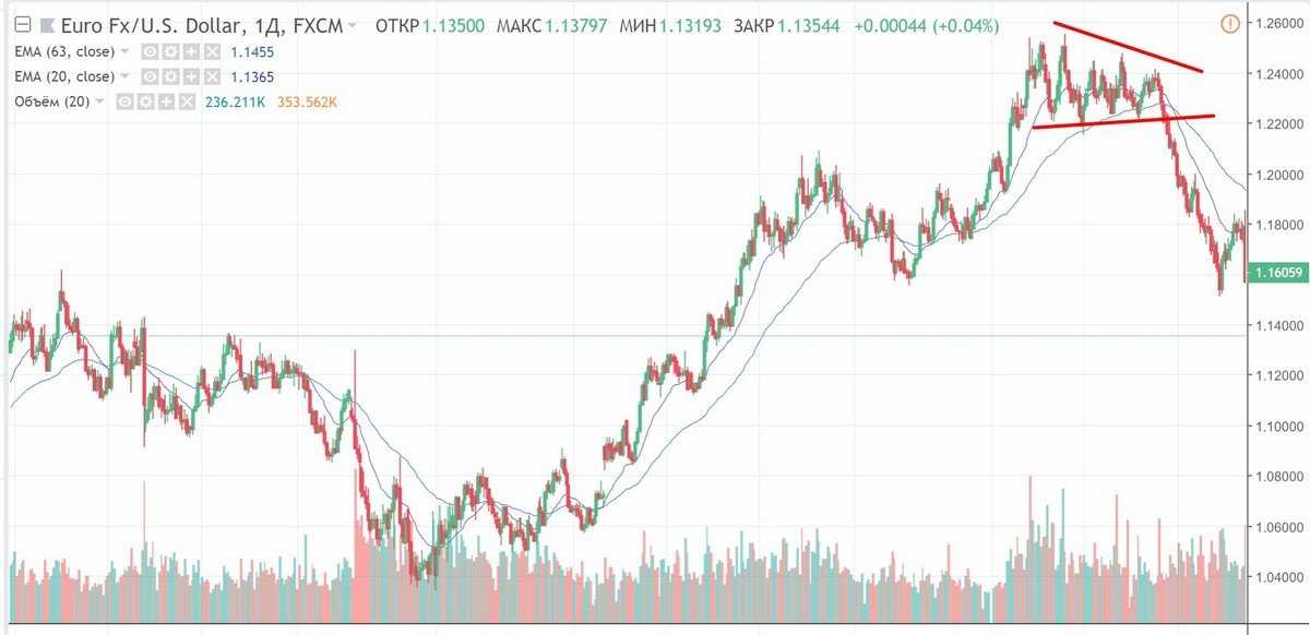 Образующиеся в результате спаек фигуры внешне напоминают трубу: на медвежьем рынке они создают дно, а на бычьем – вершину.