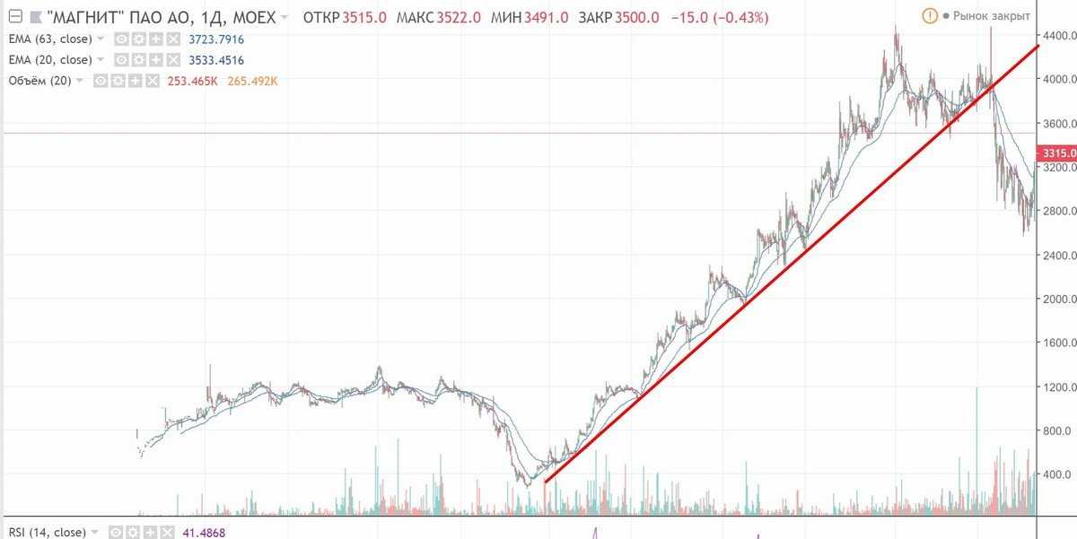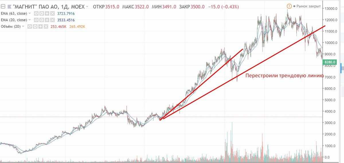 Самым простым способом для определения смены тренда служит пробой трендовой линии.