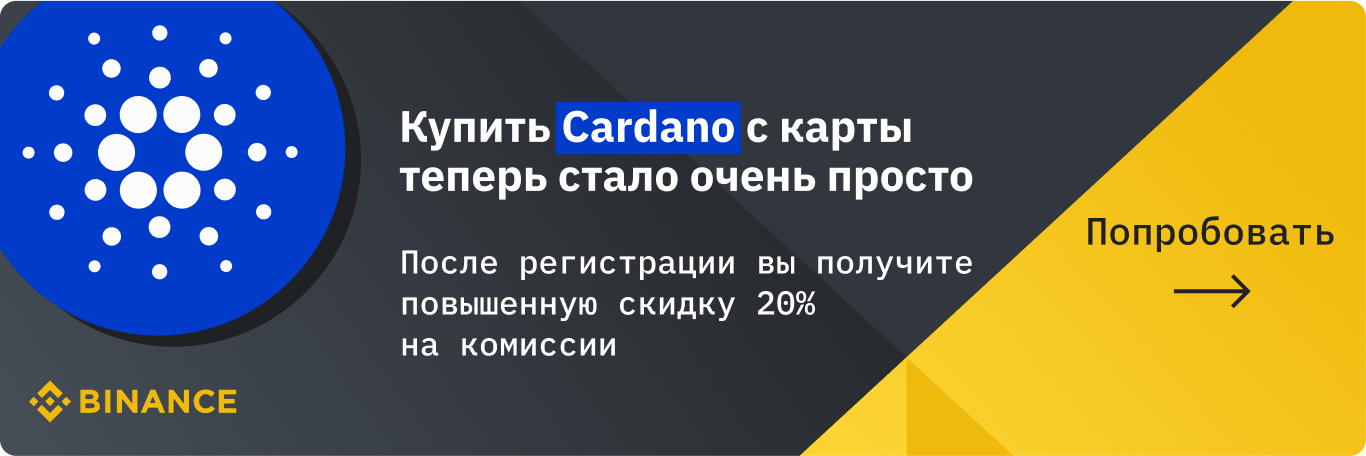 По данным CoinMarketCap на июль 2021 года, криптовалюта ADA стоит $1,28, а ее рыночная капитализация достигает около $40 млрд. Самый простой способ купить ADA — воспользоваться биржей Binance. Оплатить можно рублями с помощью банковской карты. Весь процесс занимает не более 30 минут.