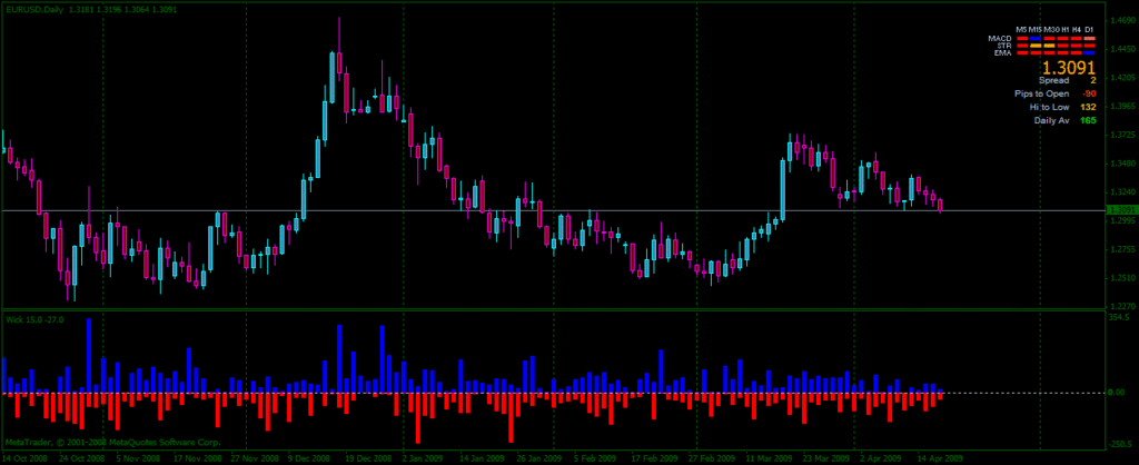 Объем нисходящих и восходящих движений – это очень краткосрочная мера силы движения цены. Он показывает, что происходит от транзакции к транзакции, и поэтому может быть довольно нестабильным в качестве индикатора.