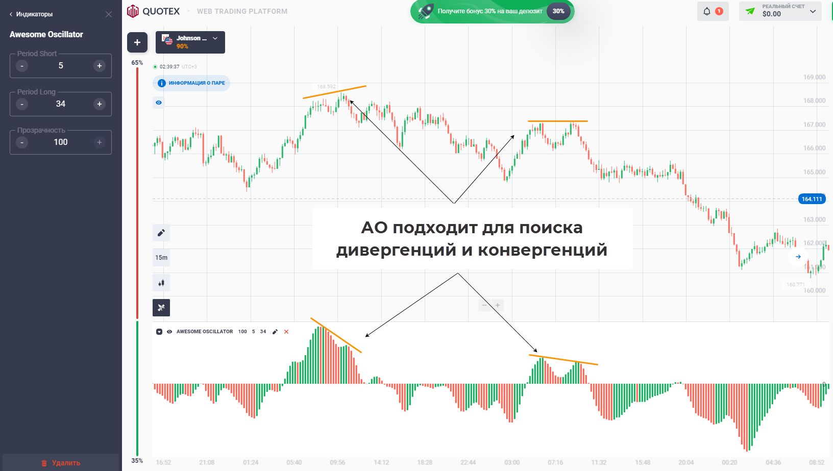 Дивергенция AO и графика цены