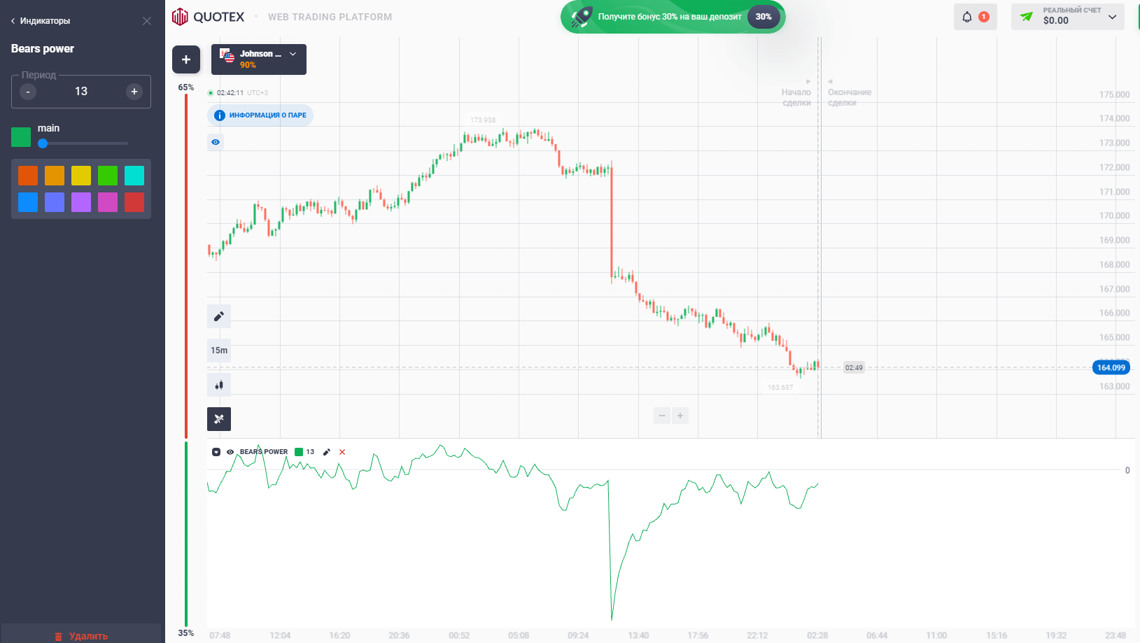 - Выбор таймфрейма.